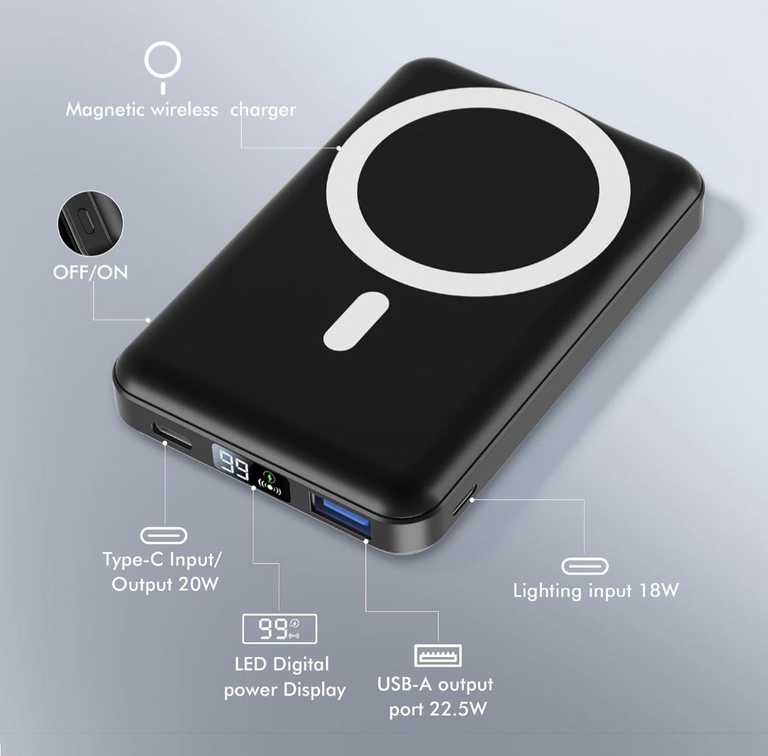MagSafe Power Bank Yiisonger 10,000 mAh в сірому кольорі