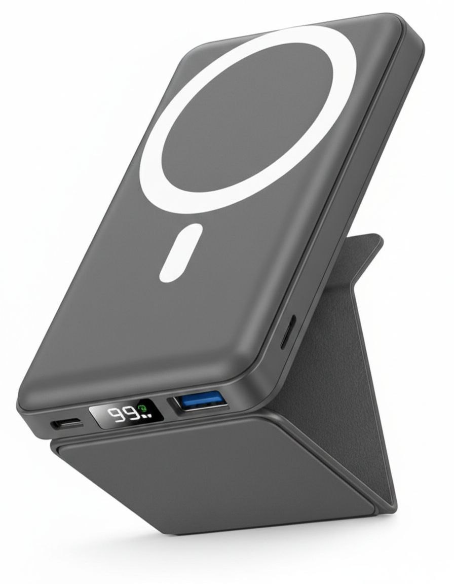 Магнітна фіксація (MagSafe compatible): Потужні неодимові магніти забезпечують миттєве та надійне кріплення. Павербанк не зміщується під час використання, дозволяючи вам вільно користуватися камерою або розмовляти по телефону.
