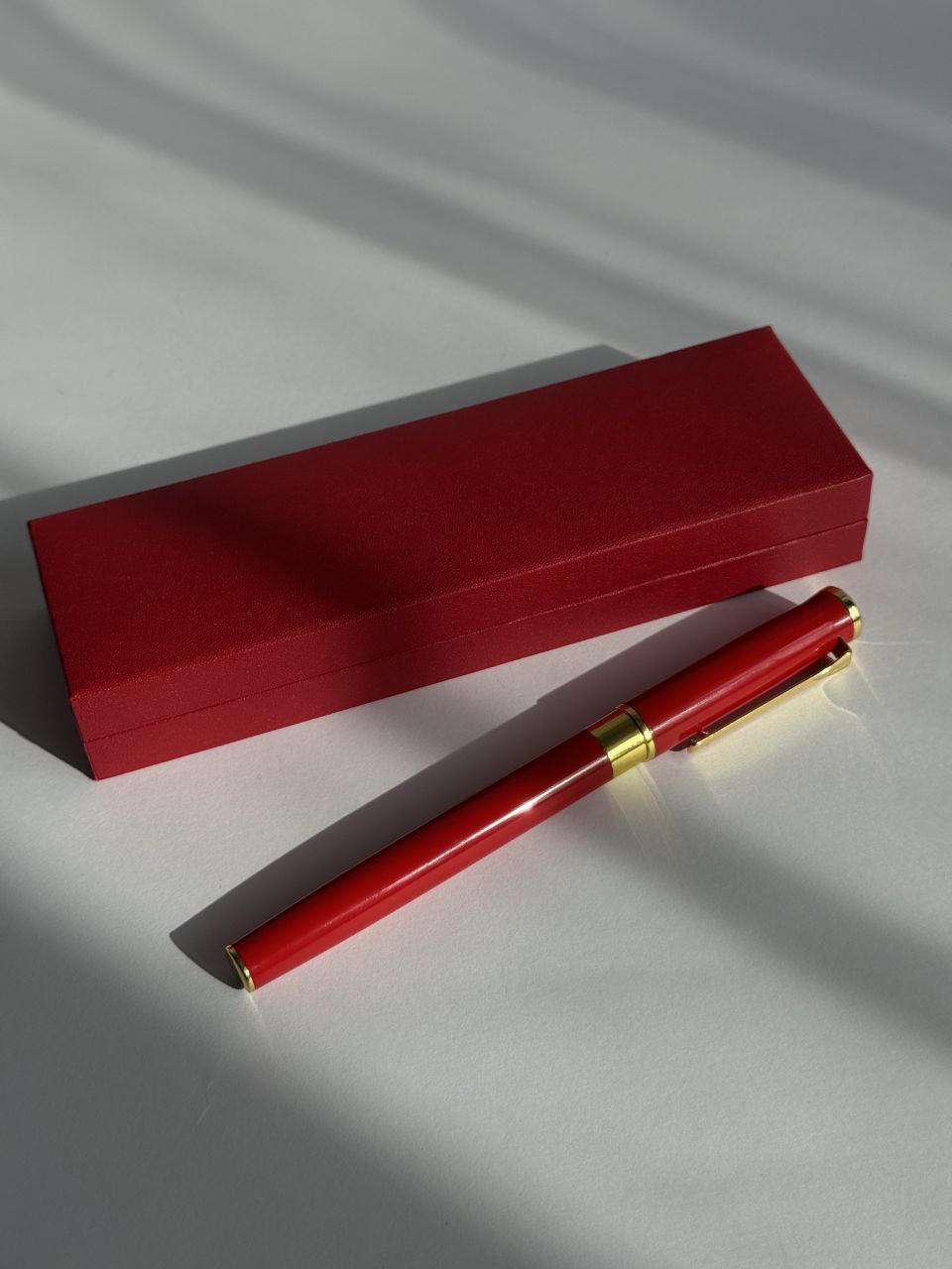Вишуканий аксесуар, що поєднує в собі класичний дизайн та бездоганну функціональність. Глибокий червоний колір корпусу в поєднанні із золотистими елементами створює образ впевненості та стилю.
