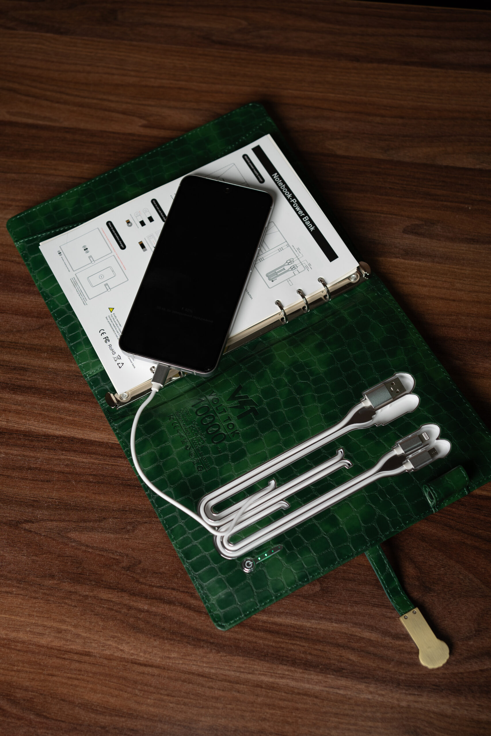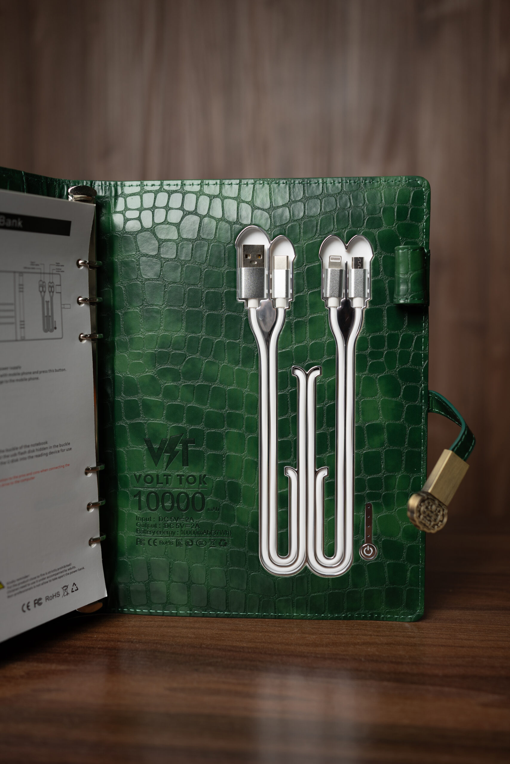 - роз’єми type C, micro USB, lightning + вбудований кабель USB для зарядки самого блокноту
