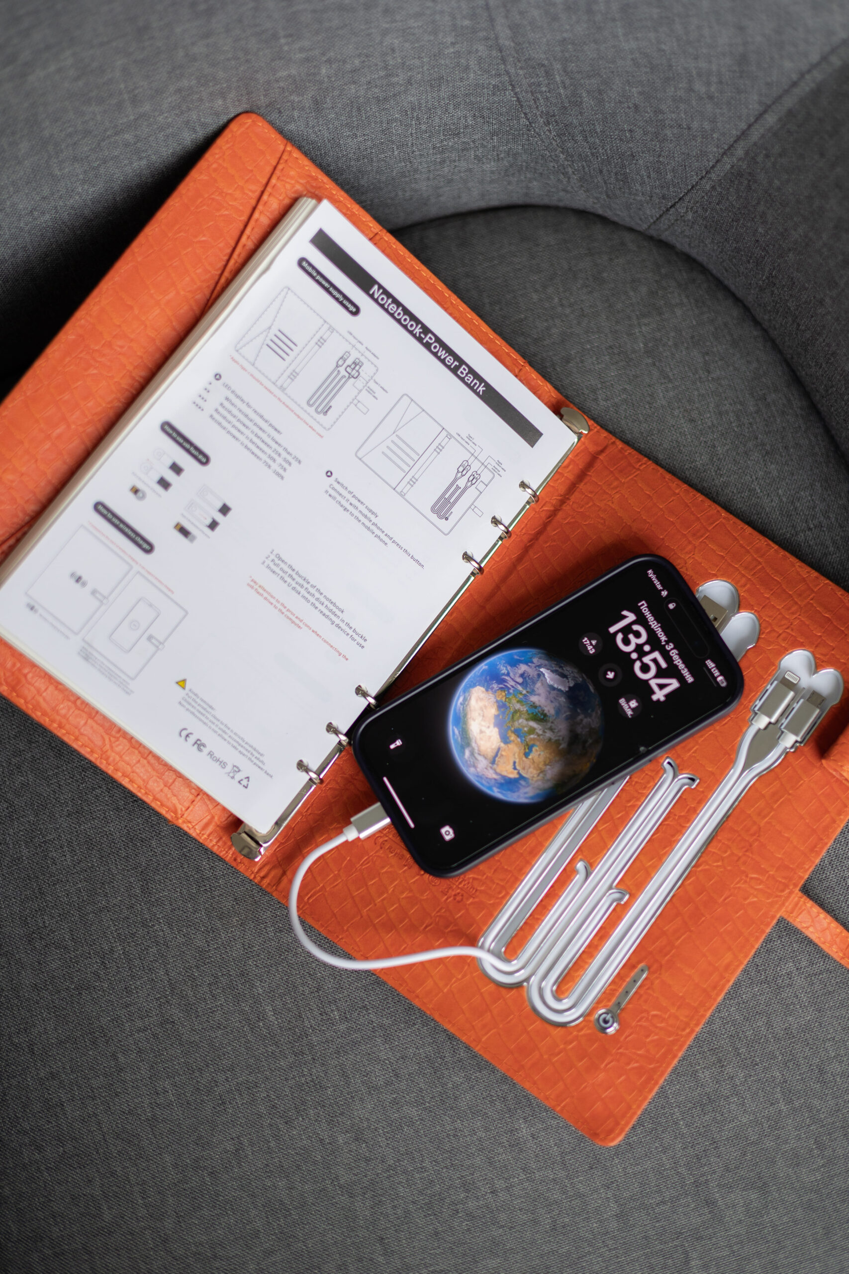 - роз’єми type C, micro USB, lightning + вбудований кабель USB для зарядки самого блокноту