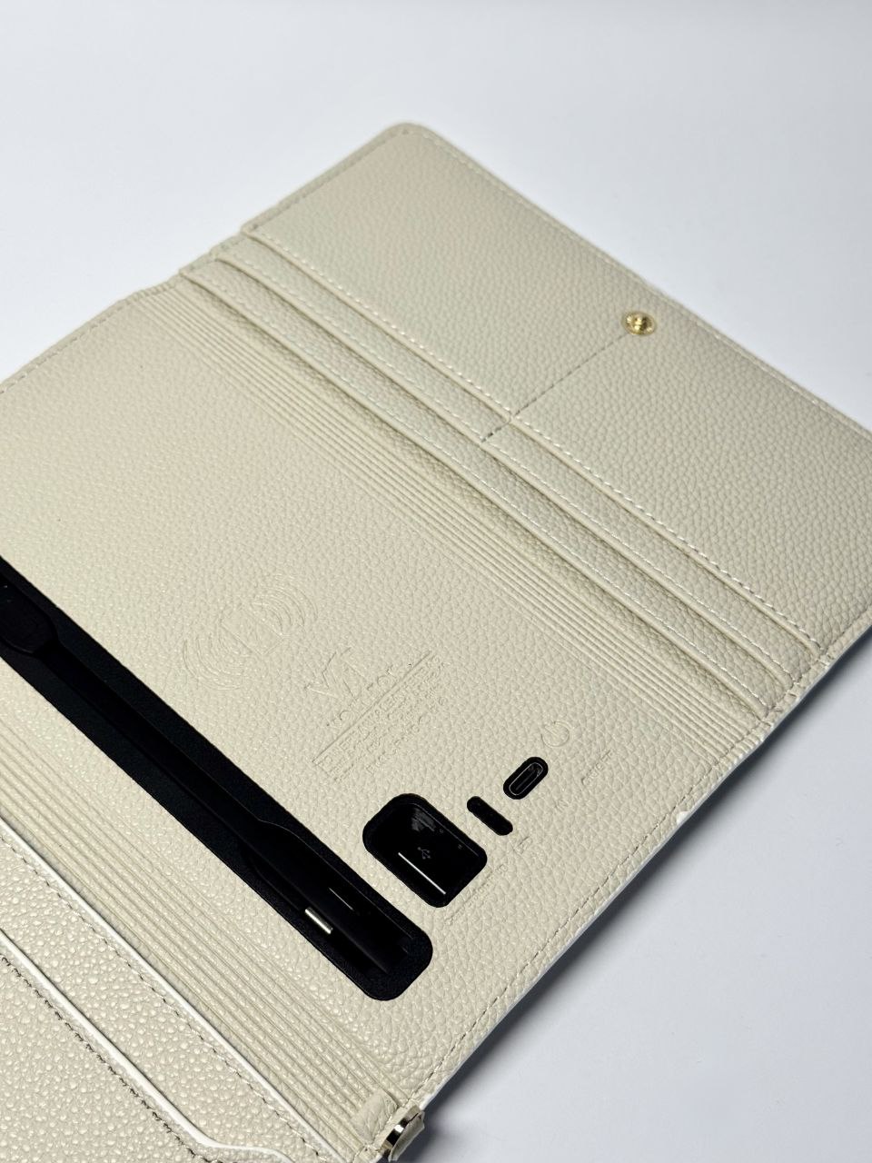 •  Підтримка бездротової зарядки прямо всередині портмоне – просто покладіть телефон у спеціальне відділення.